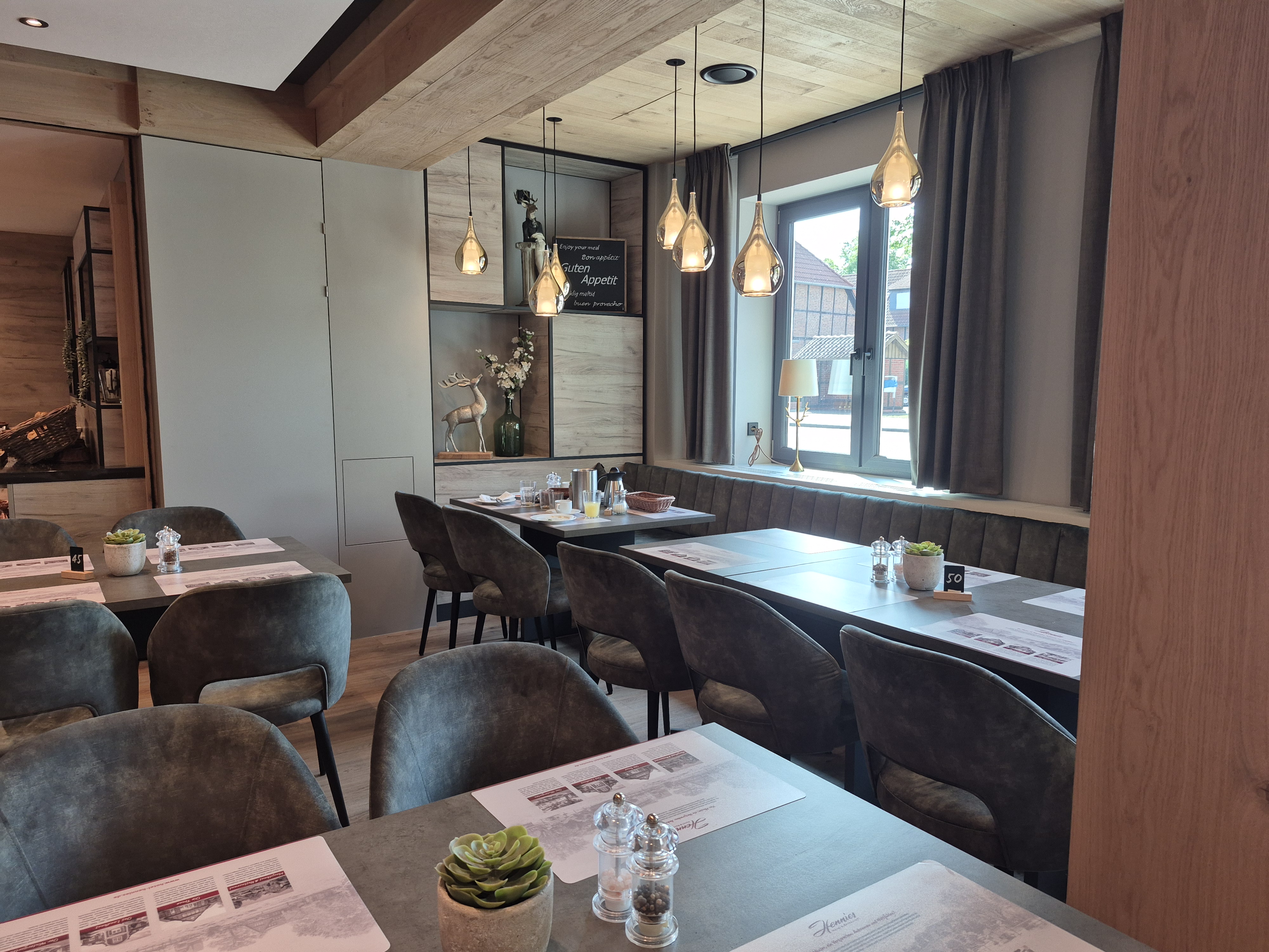 Kulinarisch setzt das Hotel Hennies auf regionale Spezialitäten mit saisonalem und internationalem Twist. Besonders beliebt: Wildgerichte aus eigener Haltung – das Damwild stammt direkt vom Gehege auf dem Gelände. Mit unserer Ausstattung sorgen wir dafür, dass diese Spezialitäten unter besten Bedingungen präsentiert und serviert werden.