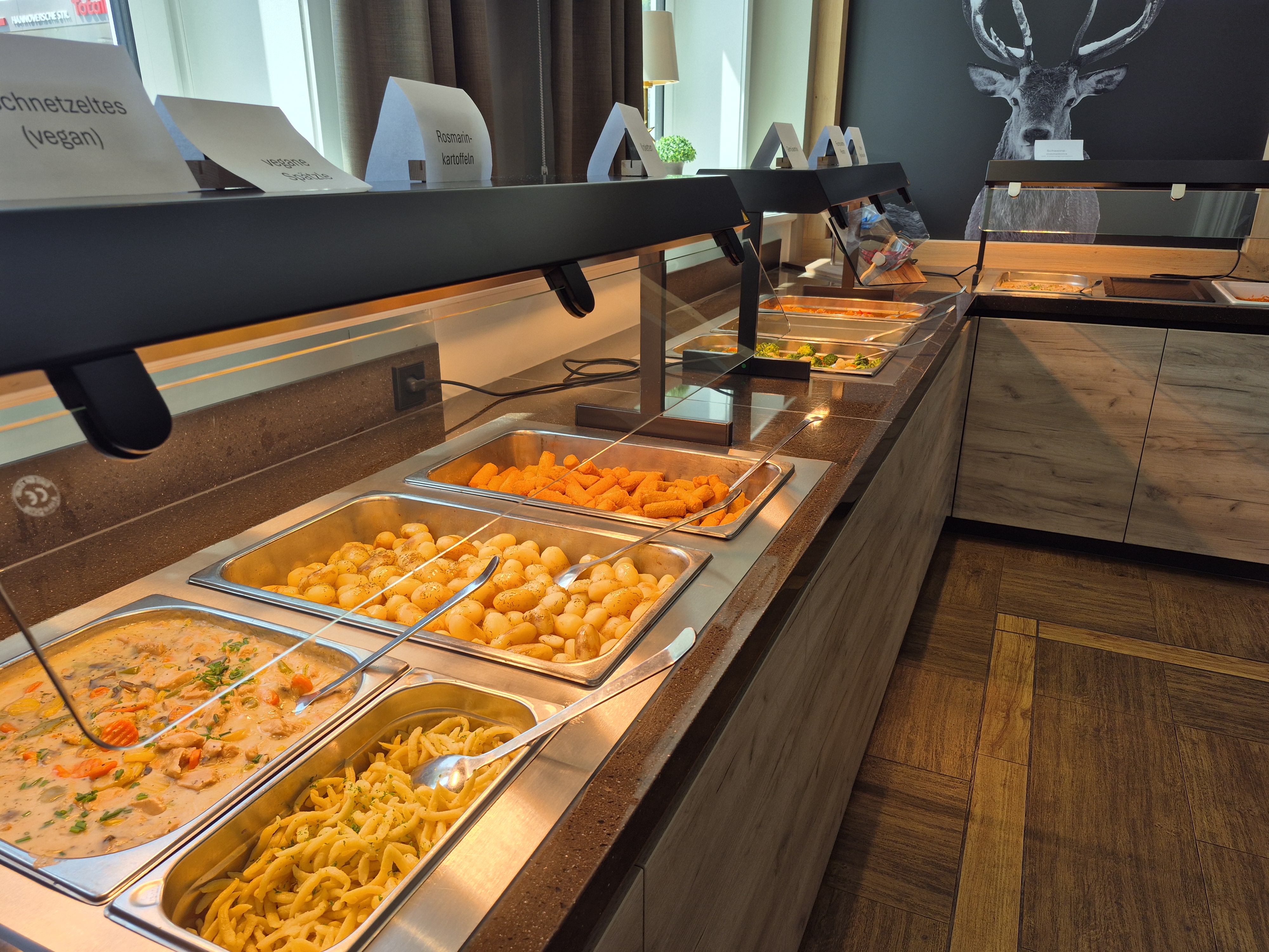 Für warme Speisen setzt das Hotel Hennies auf die Multifunktionswanne heiß/kalt (Typ CW-990/3) von Scholl mit getrennter, digitaler Steuerung. Sie passt sich flexibel dem Tagesgeschäft an – von Frühstück bis Abendmenü. Ergänzt wird das System durch eine 1-etagige Wärmebrücke von Scholl mit integriertem Hustenschutz und LED-Spots, die warme Speisen appetitlich präsentieren und zuverlässig temperieren.